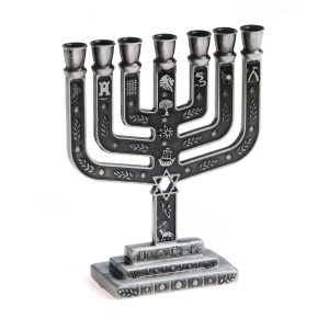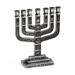 מנורה שבטים מגן דוד מרובעת צבע פיוטר 10 ס"מ