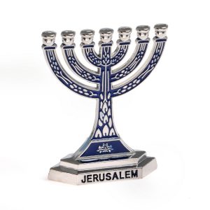 מנורה קטנה צבע ניקל/אמייל כחול 7 ס"מ
