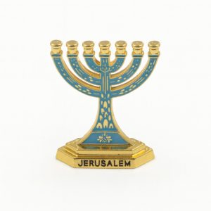 מנורה מיני צבע זהב/אמייל טורקיז 4 ס"מ