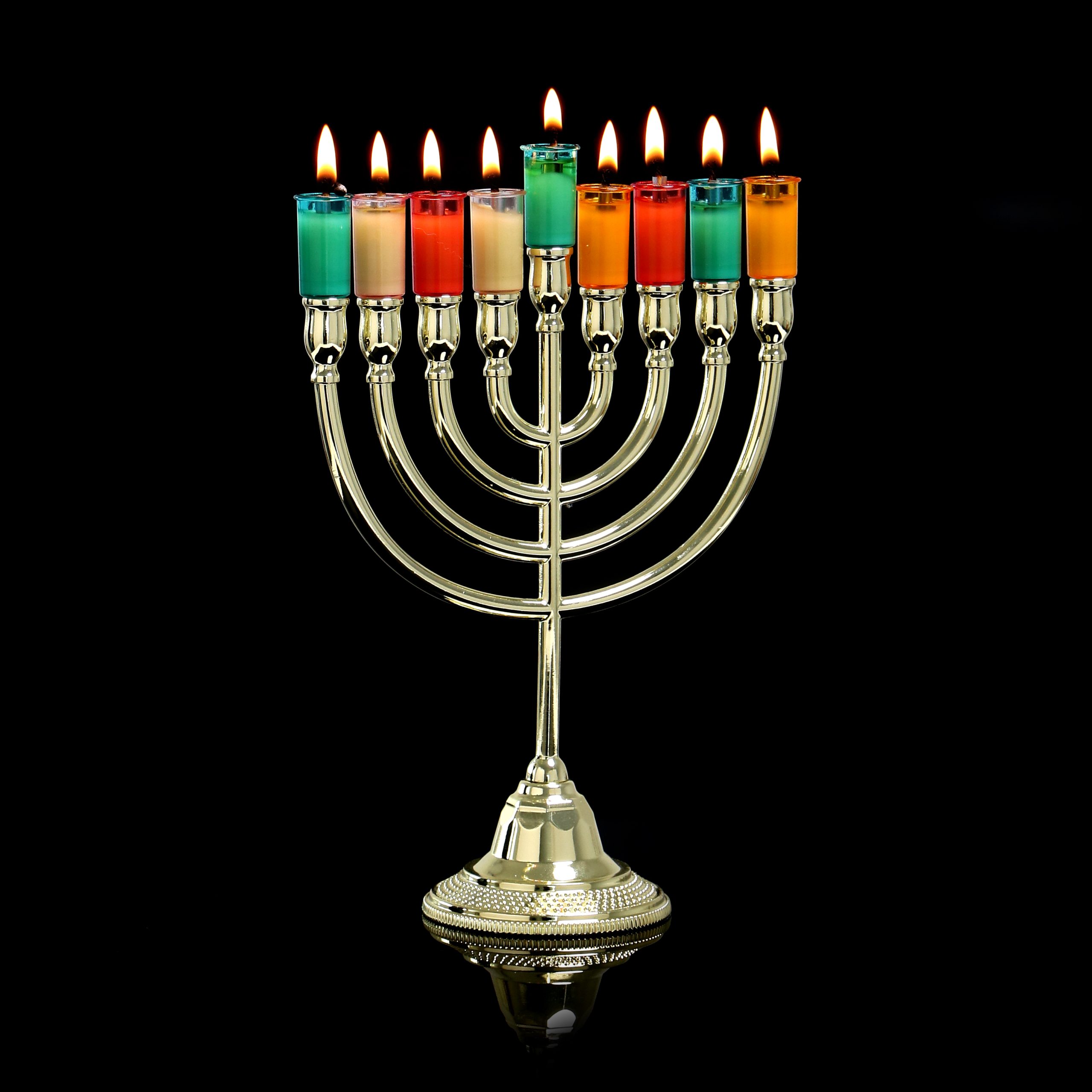 חנוכיה קלאסית מתכת צבע זהב קטנה 23 ס"מ