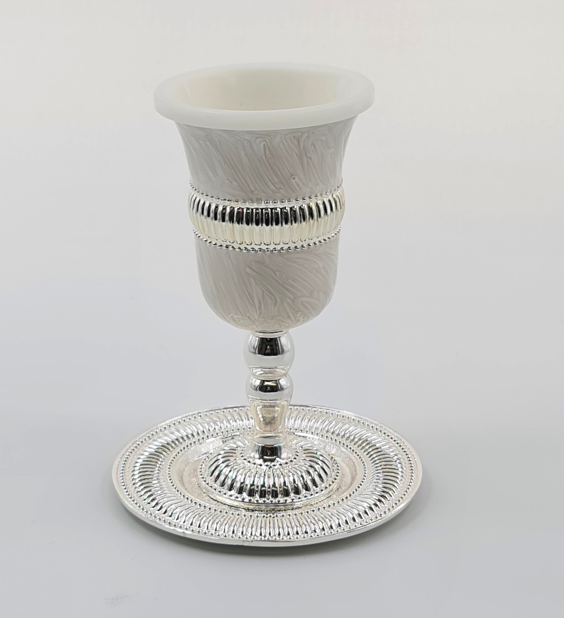גביע עם רגל/תחתית מוכסף/אמייל לבן