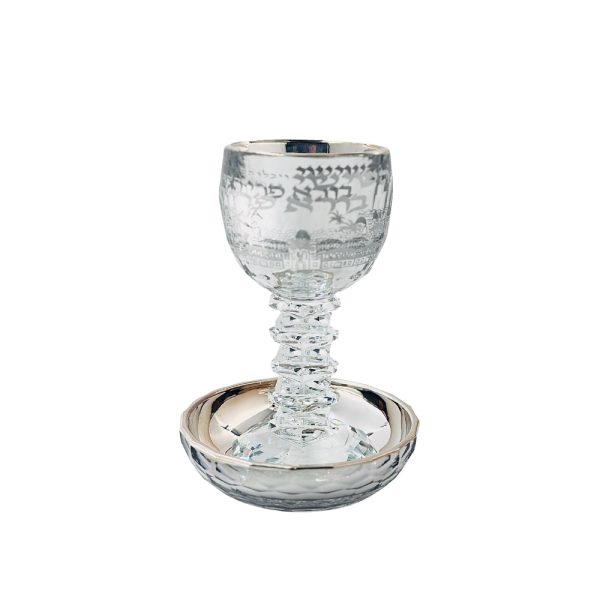 גביע קידוש על רגל+תחתית קריסטל מוכסף רושלים
