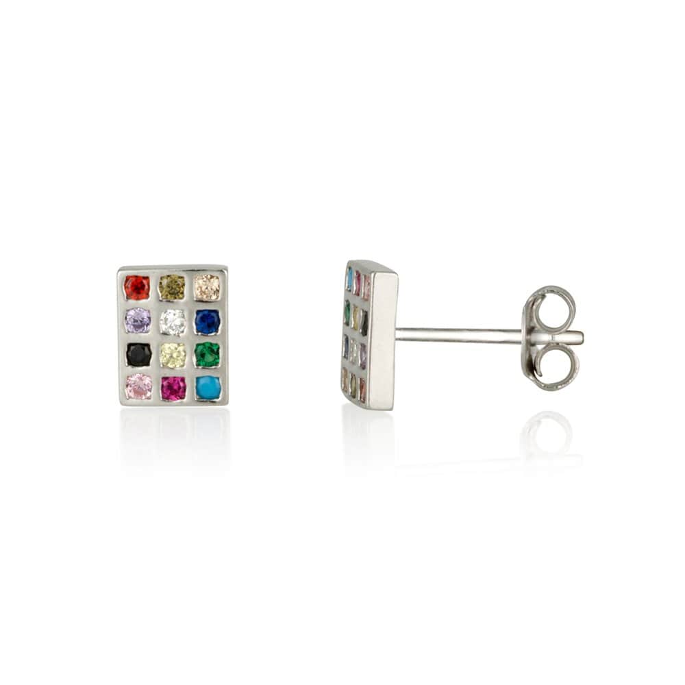 זוג עגילים אבני החושן כסף ואבני זירקון צבעוני