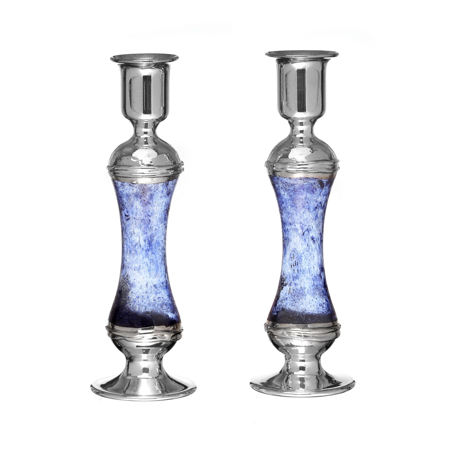 זוג פמוטים זכוכית+כסף 925 21 ס"מ