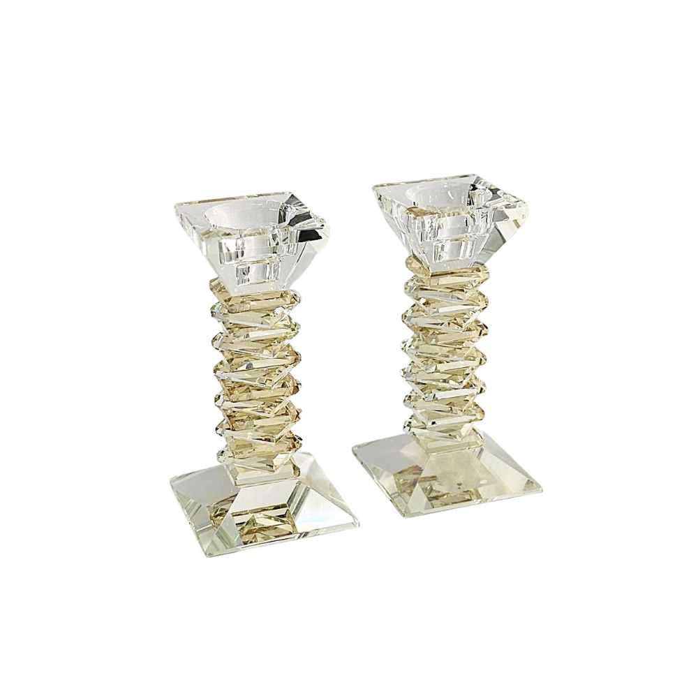 זוג פמוט קריסטל מוזהב מדורג 16 ס"מ