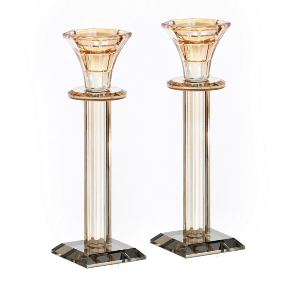 זוג פמוט קריסטל ענבר/אפור 19.5 ס"מ