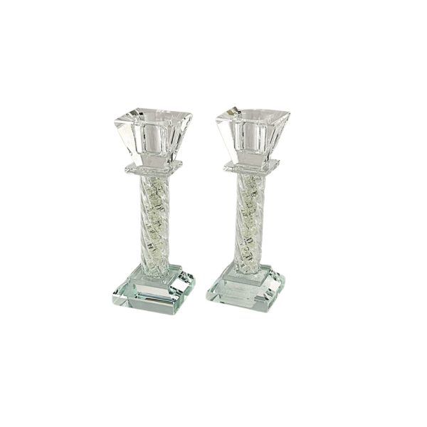 זוג פמוט קריסטל/רסיסים לבנים מרובע 14 ס"מ