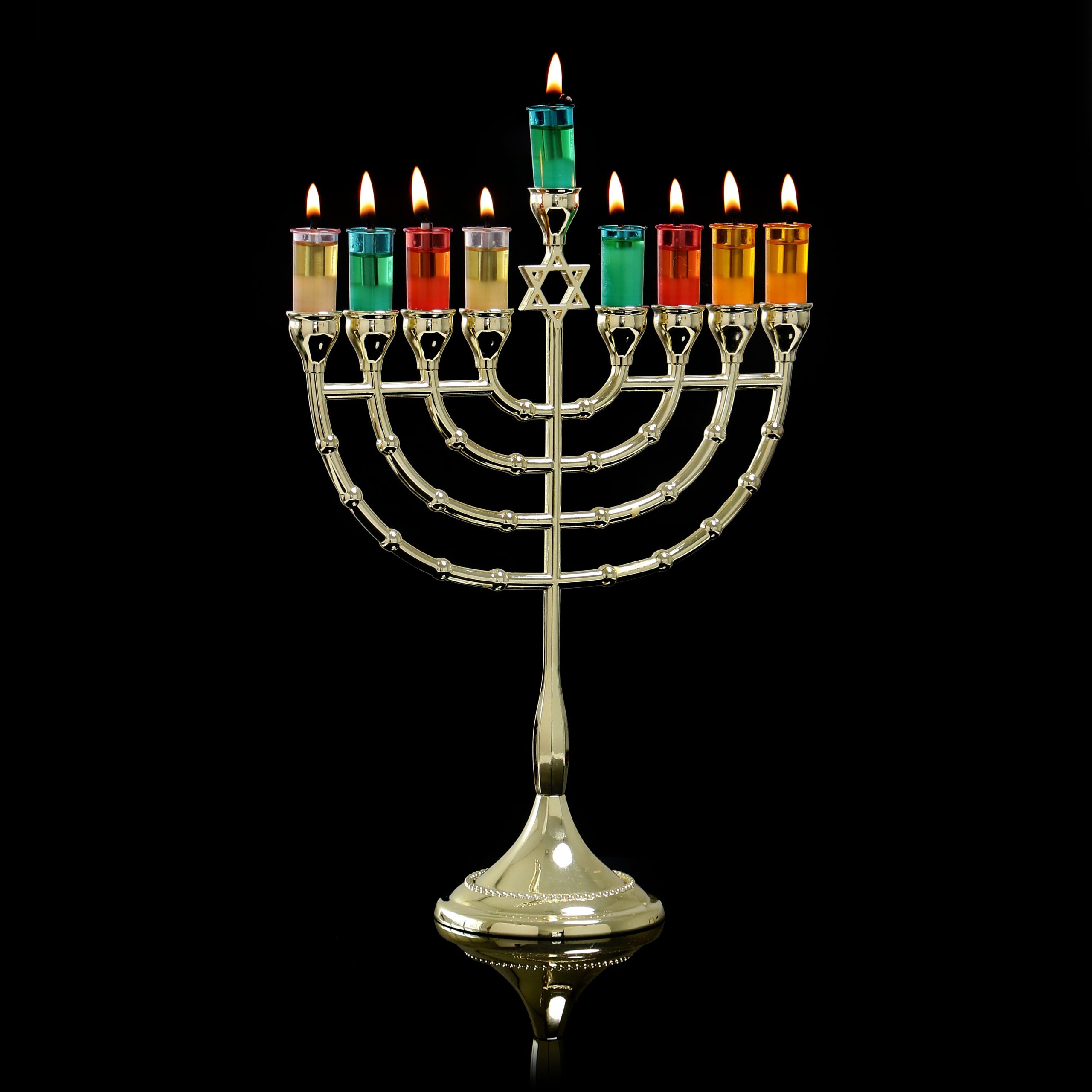 חנוכיה מגן דוד מתכת צבע זהב גדולה 29.5 ס"מ
