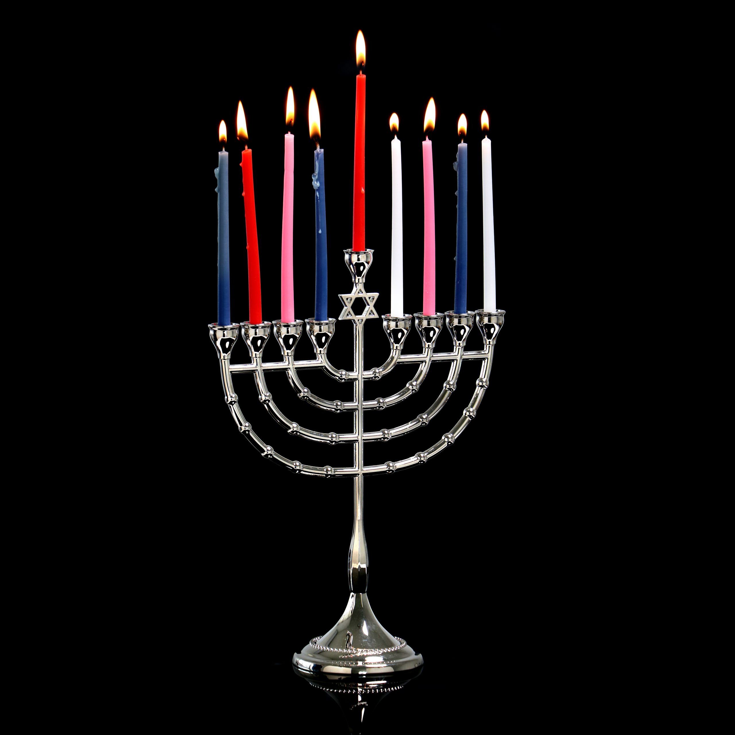 חנוכיה מגן דוד מתכת ציפוי ניקל גדולה 29.5 ס"מ
