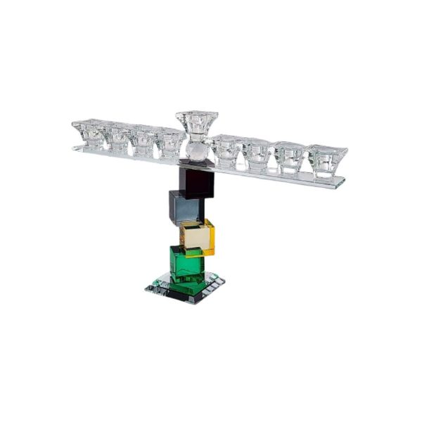 חנוכייה קריסטל קוביות צבעוני 24 ס"מ
