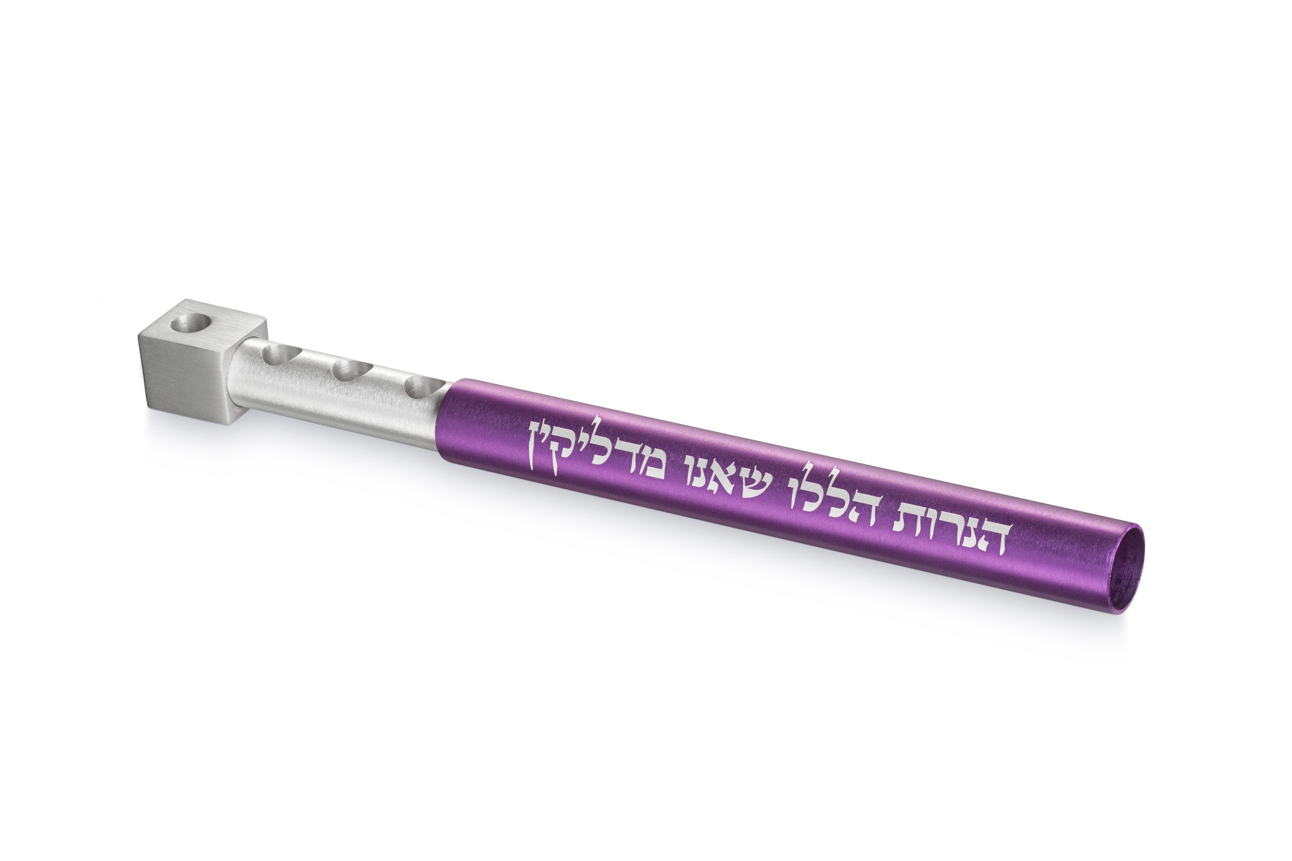 חנוכיית כיס אלומיניום סגול וכסף {50}