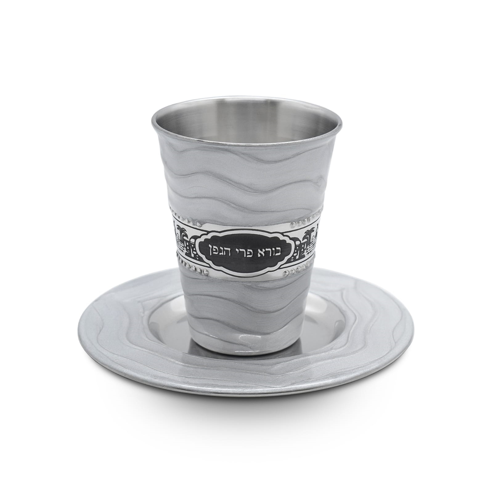 כוס קידוש/תחתית נירוסטה אמייל כסף/צריבה ירושלים