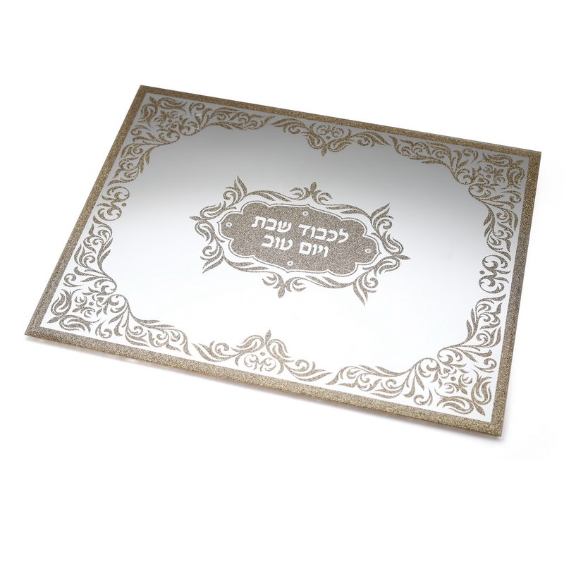 מגש חלה מראה לכבוד שבת קודש מוזהב 35/25 ס"מ