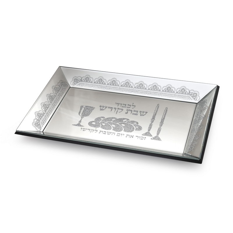 מגש חלה מראה לכבוד שבת קודש מוכסף 32/18 ס"מ