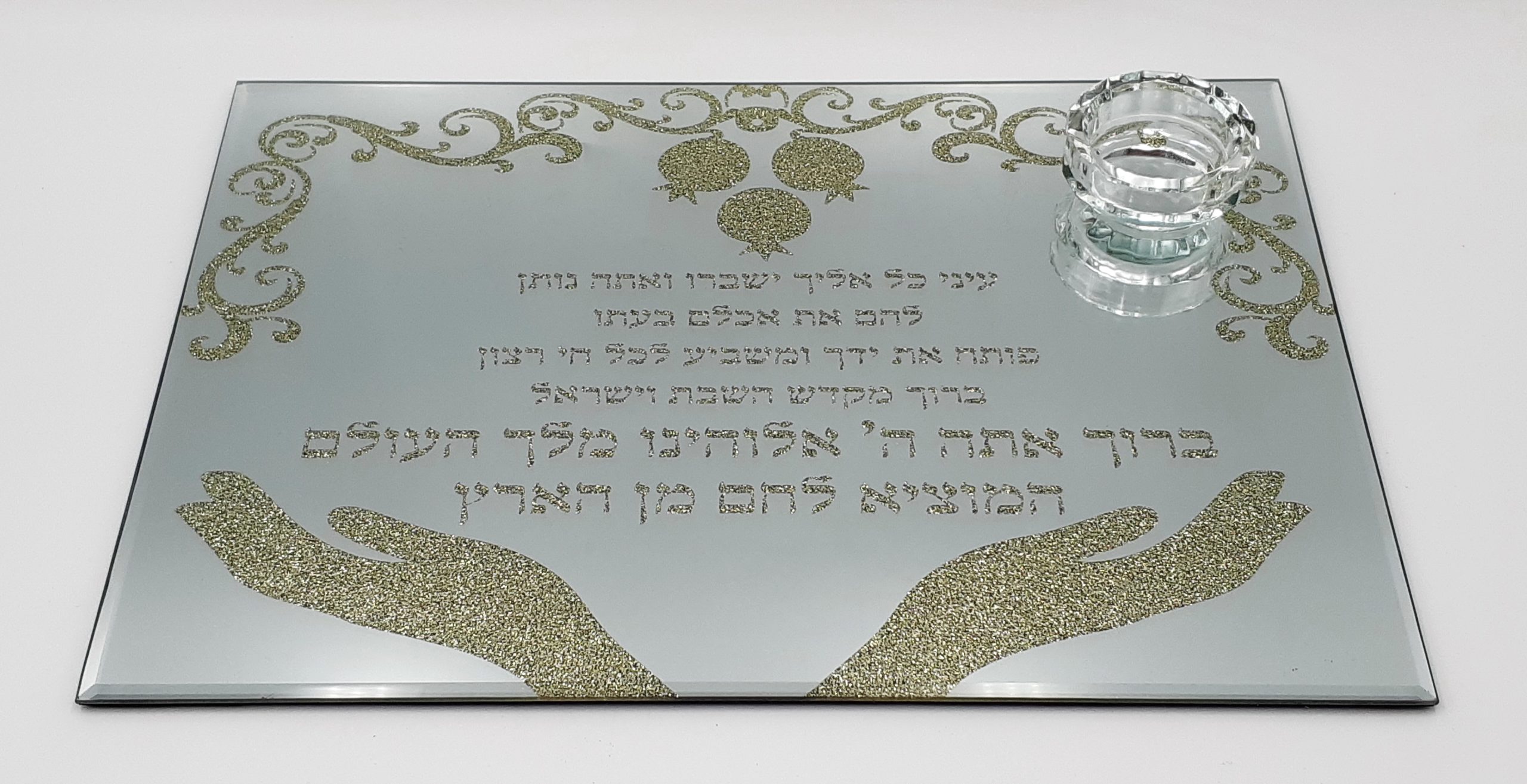 מגש חלה מראה פותח את ידייך רסיסים זהב+מלחיה