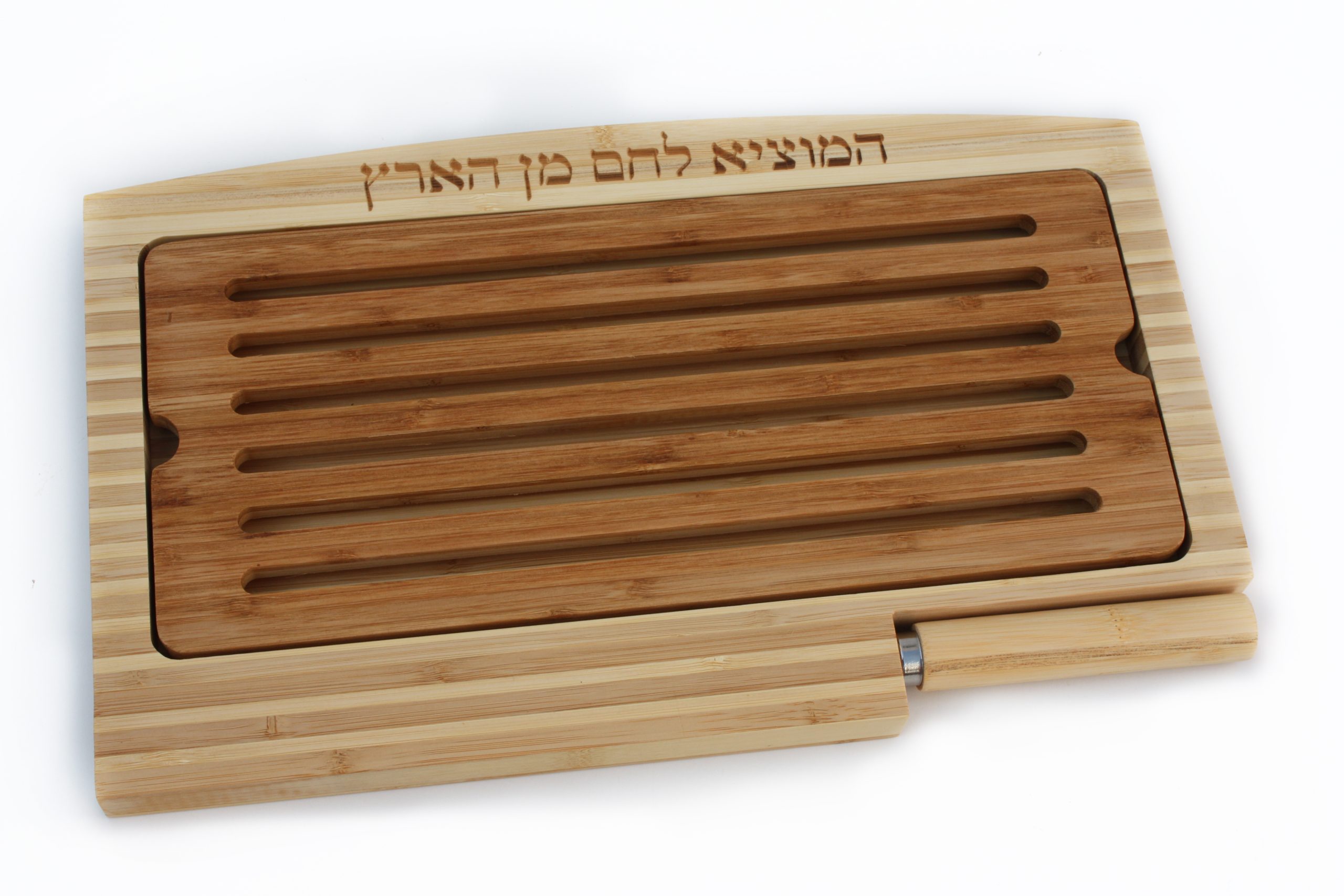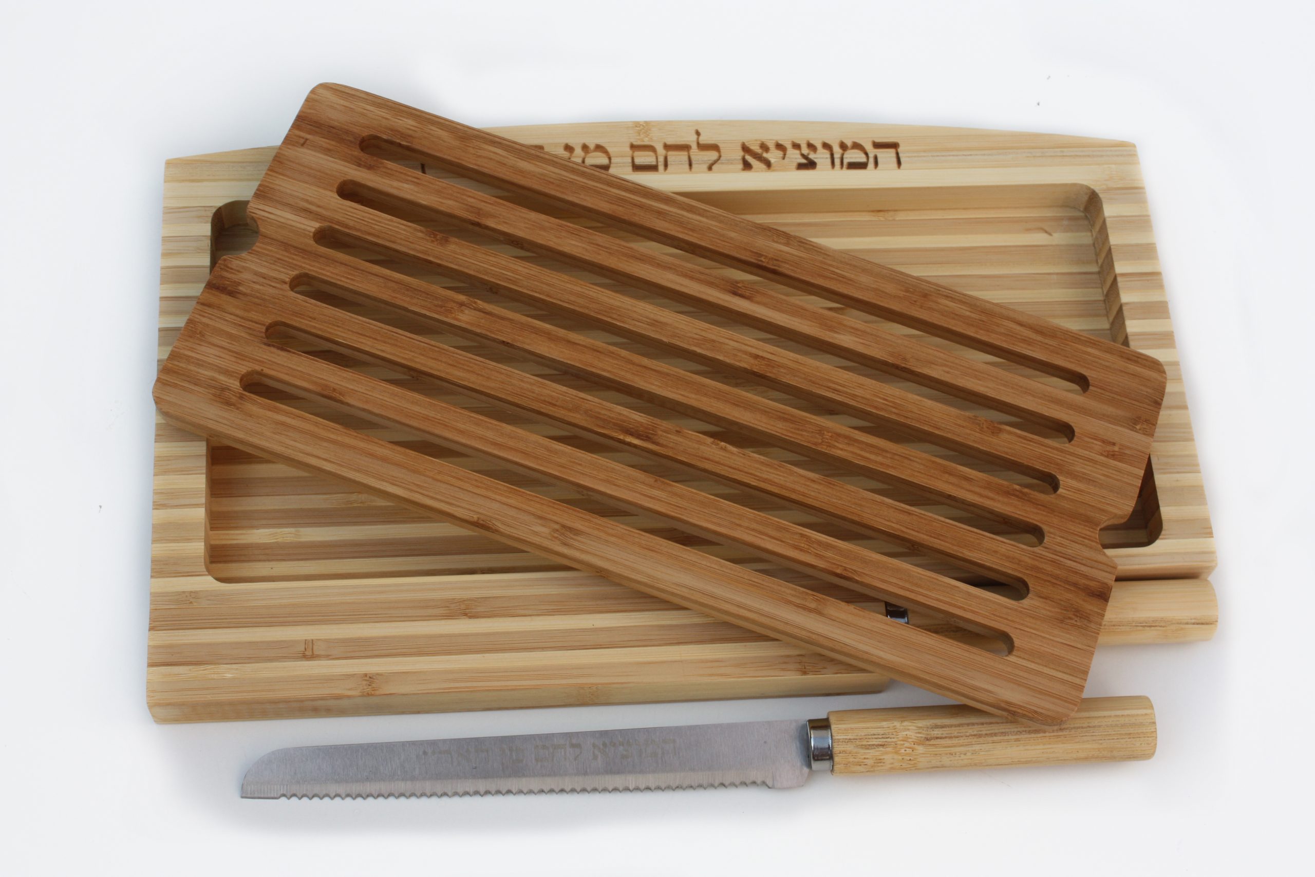 מגש חלה – 2 חלקים-עץ במבוק + סכין אלחלד
