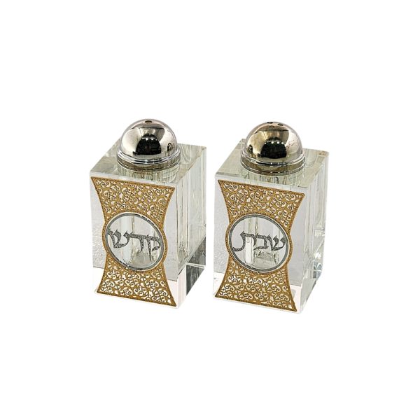 מלח/פלפל קריסטל/פלקטה פרחים כסף/זהב 8 ס"מ