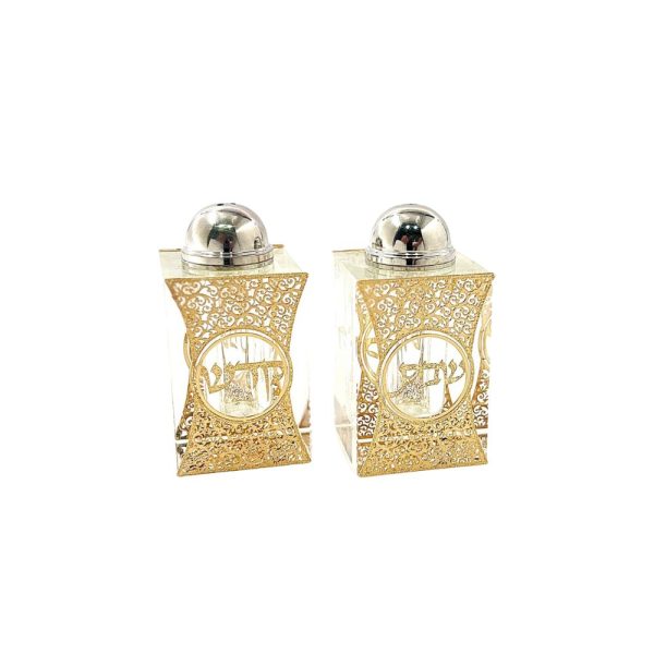 מלח/פלפל קריסטל/פלקטה פרחים מוזהב 8 ס"מ