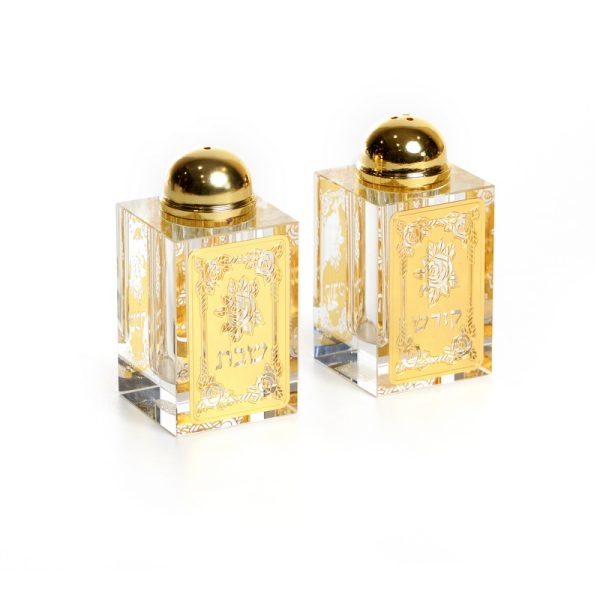 מלח/פלפל שבת קודש קריסטל/זהב 8 ס"מ