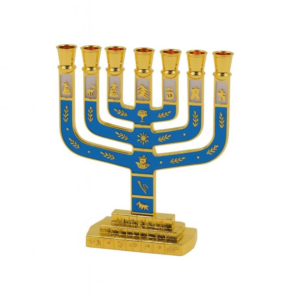 מנורה שבטים מרובעת צבע זהב/אמייל טורקיז ולבן 10 ס"מ