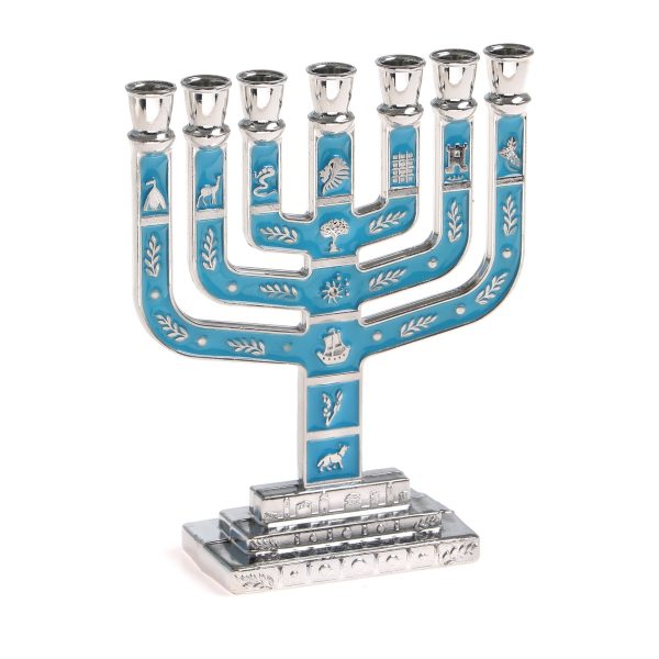 מנורה שבטים מרובעת צבע ניקל/אמייל טורקיז 10 ס"מ
