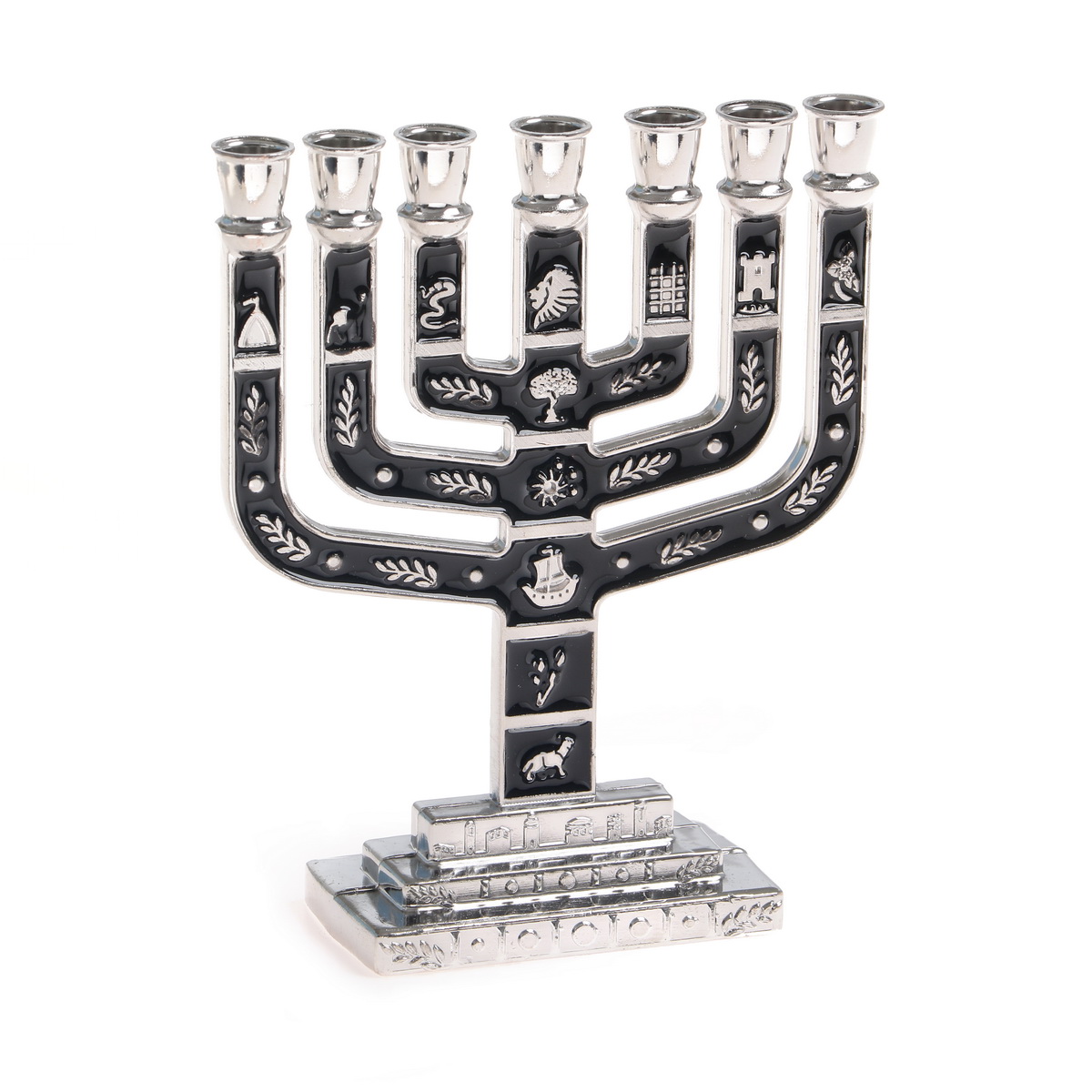 מנורה שבטים מרובעת צבע ניקל/אמייל שחור 10 ס"מ