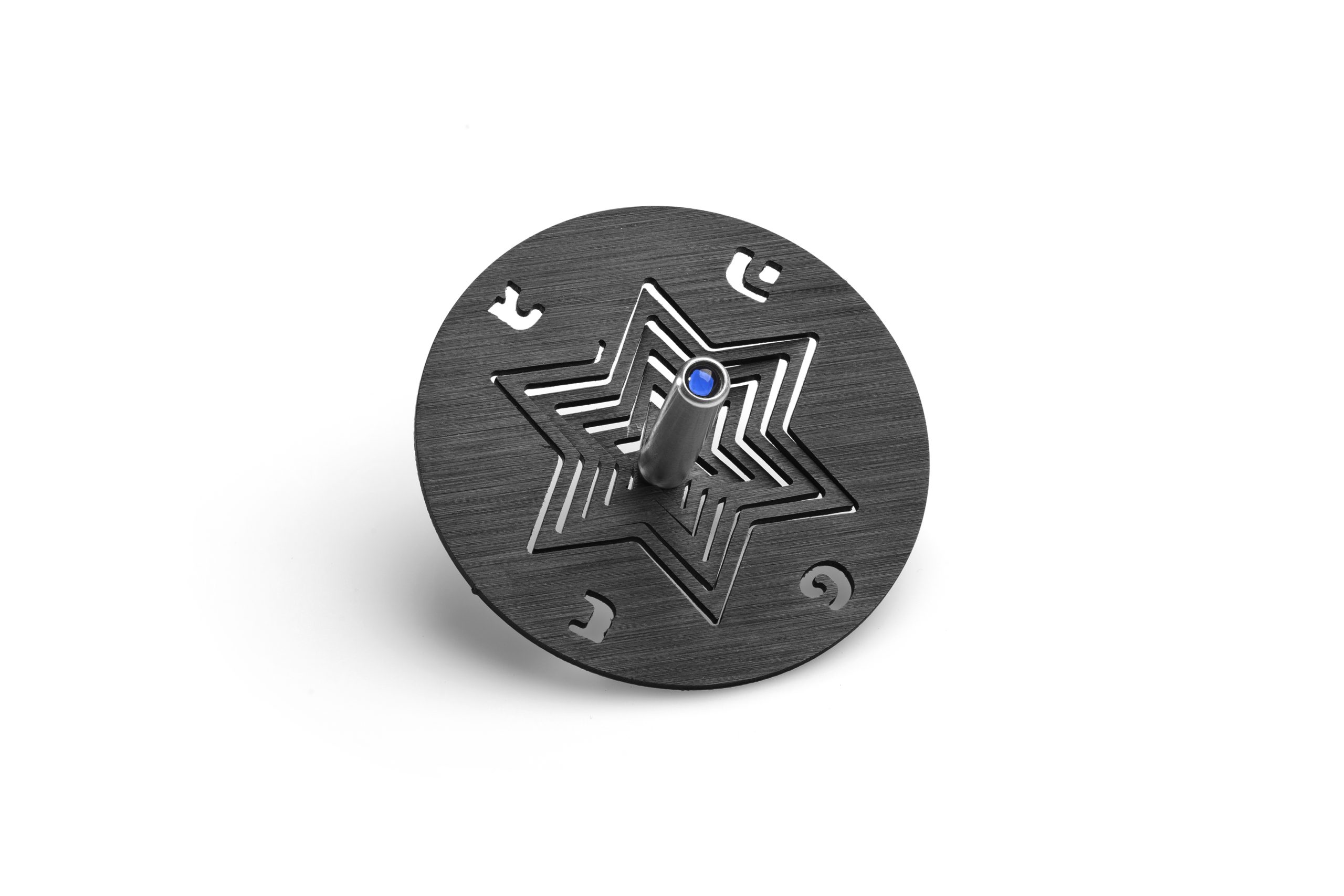 סביבון מגן דוד אלומיניום שחור עם סטנד{46}