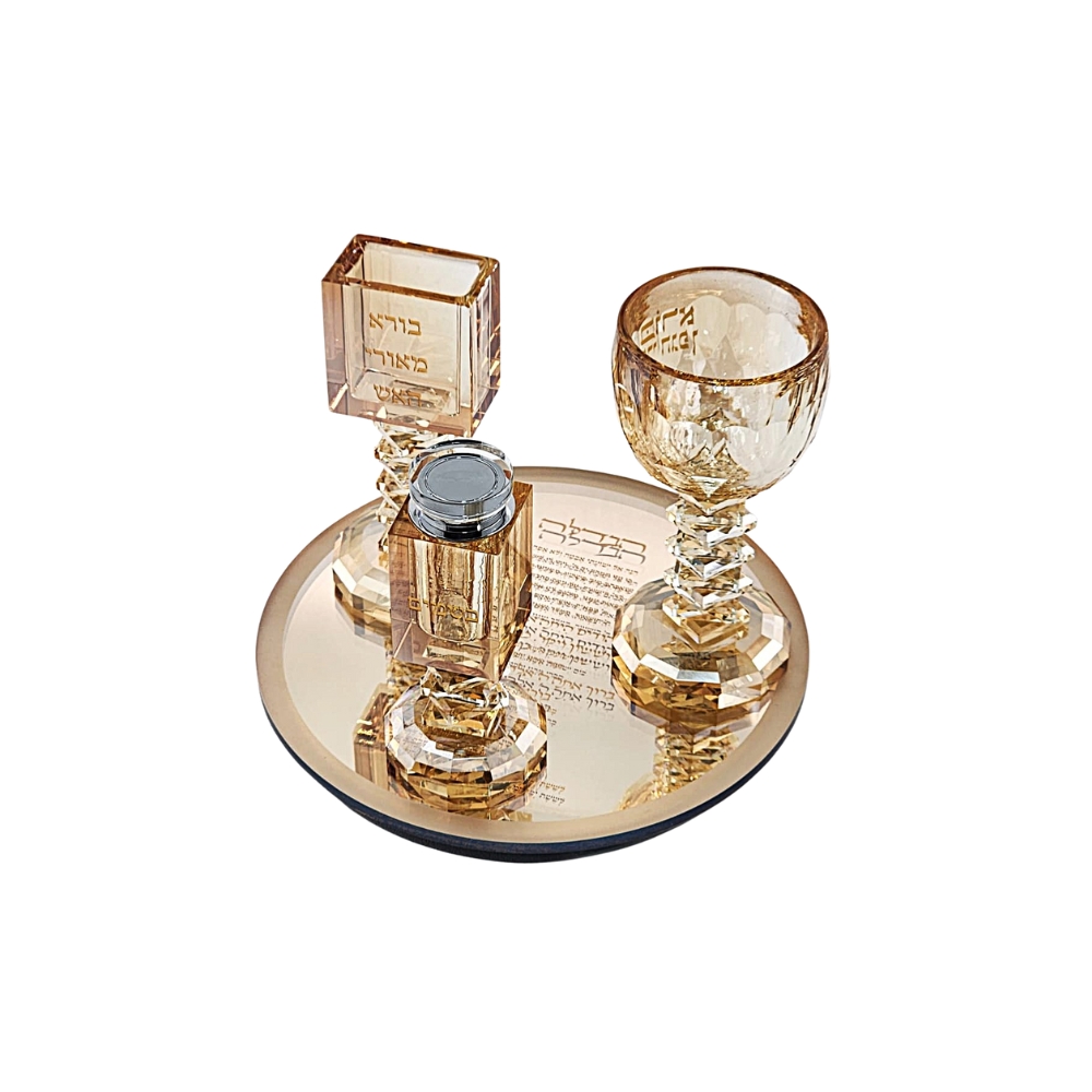 סט הבדלה קריסטל ענבר מדורג עם ברכה על המגש