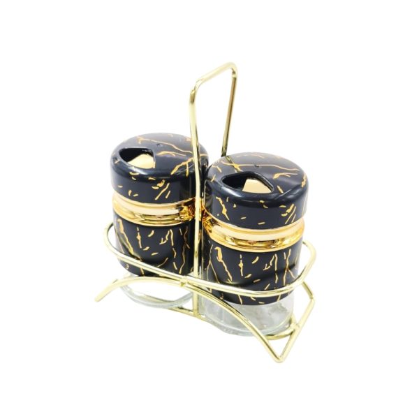 סט מלח/פלפל זכוכית שחור/זהב שיש 13 ס"מ