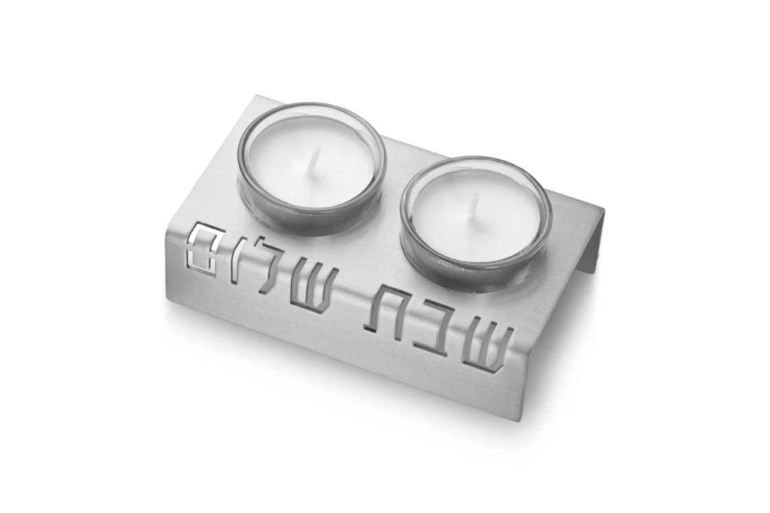 פמוט "שבת שלום" אלומיניום כסף {65}