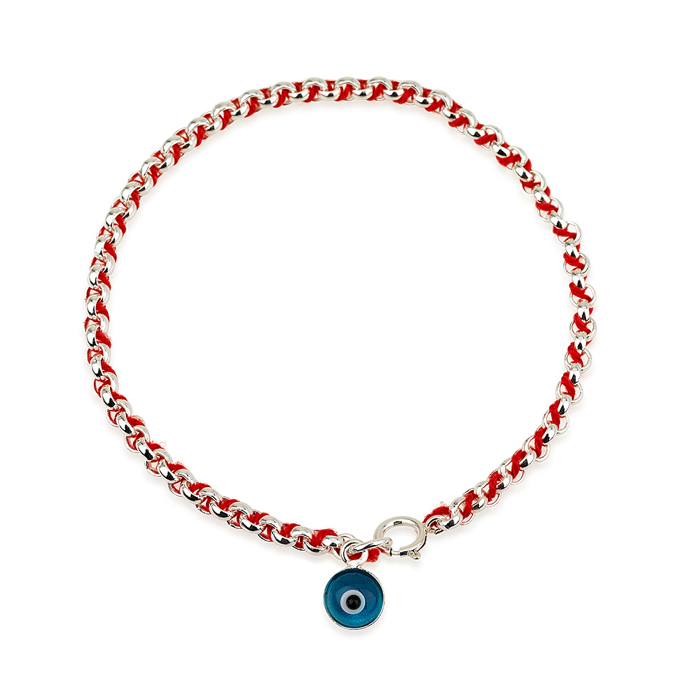 צמיד קבלה עין טורקיז חוט אדום וכסף