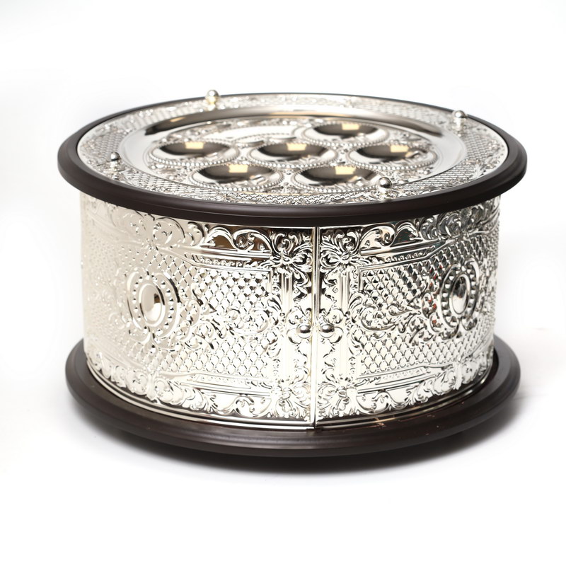 קערה לפסח 3 קומות פ.ציון ציפוי כסף/עץ קוטר 43.5 ס"מ