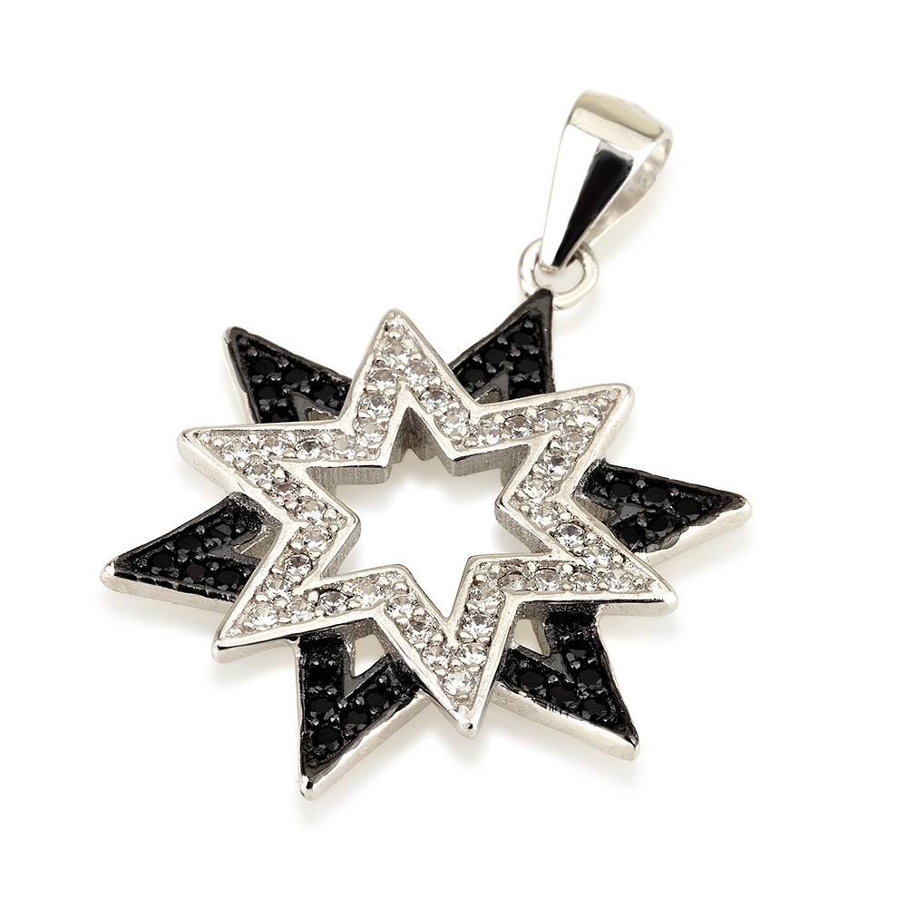 תליון מגן דוד כפול כסף ואבני זרקון לבן/שחור