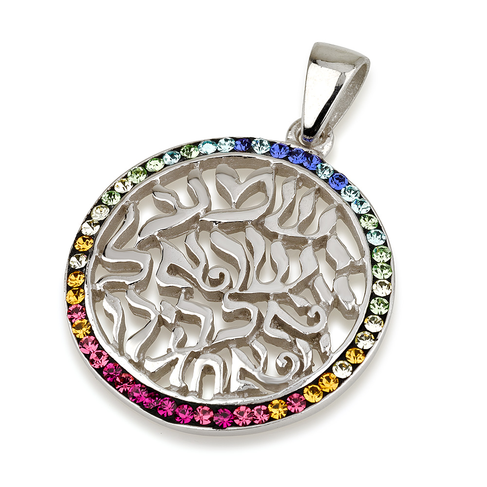 תליון קבלה "שמע ישראל" כסף ואבני קריסטל