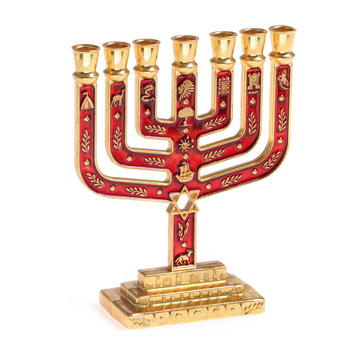 מנורה שבטים מגן דוד מרובעת צבע זהב/אמייל אדום 10 ס"מ