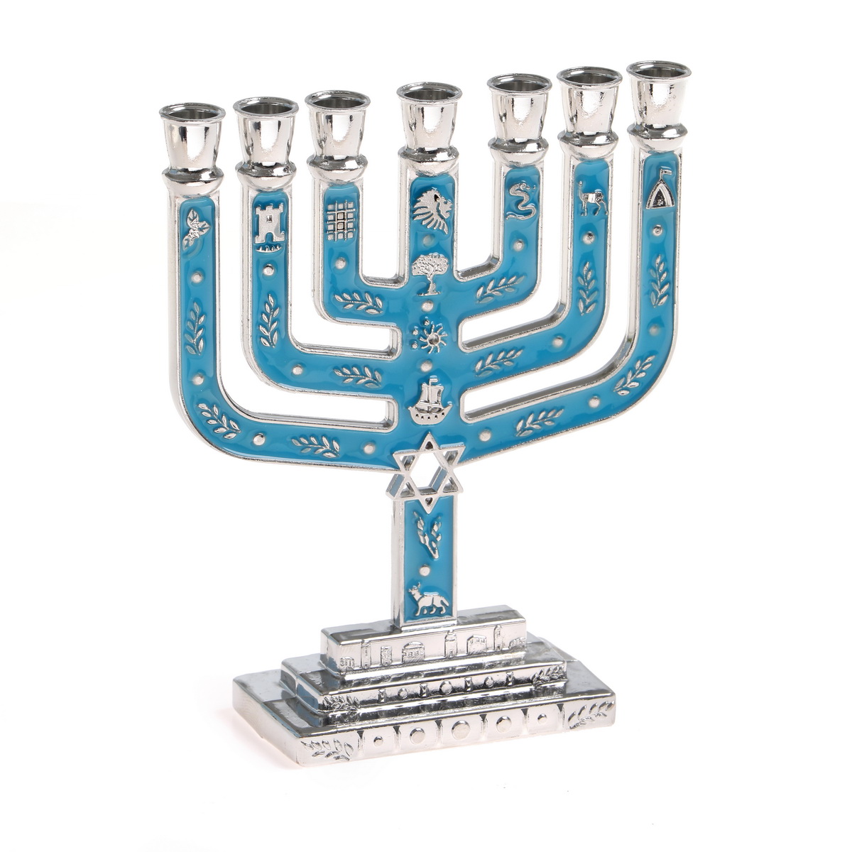 מנורה שבטים מגן דוד מרובעת צבע ניקל/אמייל טורקיז 10 ס"מ