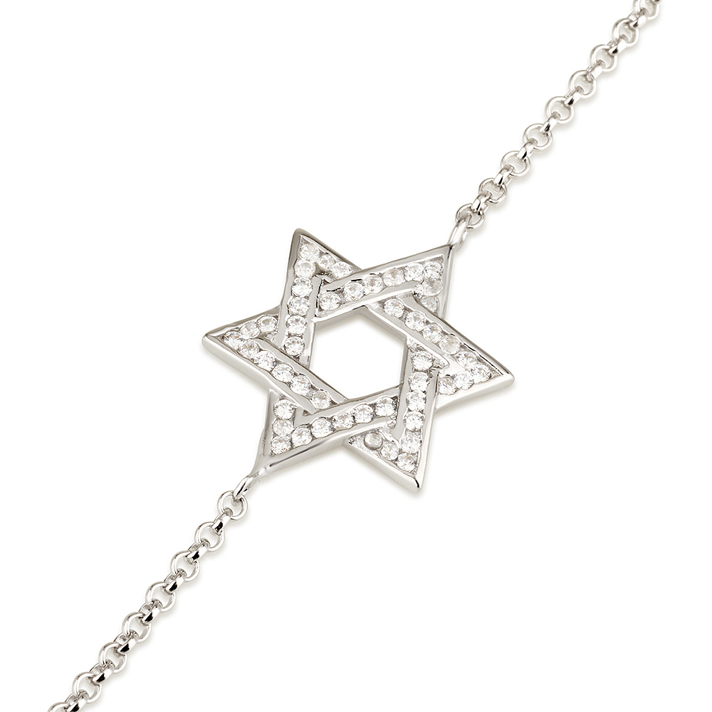 צמיד מגן דוד כסף ואבני זרקון לבן