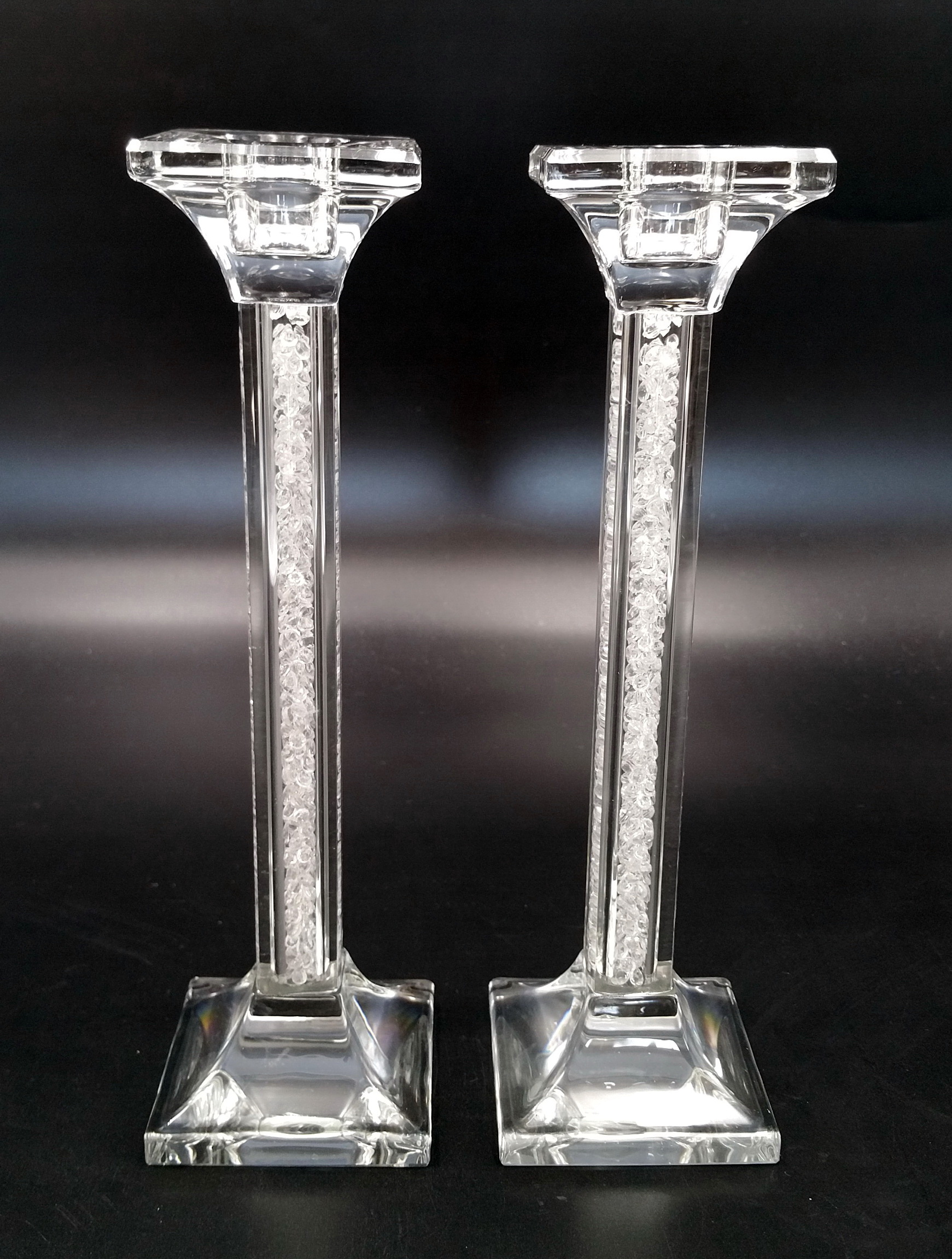 זוג פמוט קריסטל/רסיסים לבנים מרובע 21 ס"מ