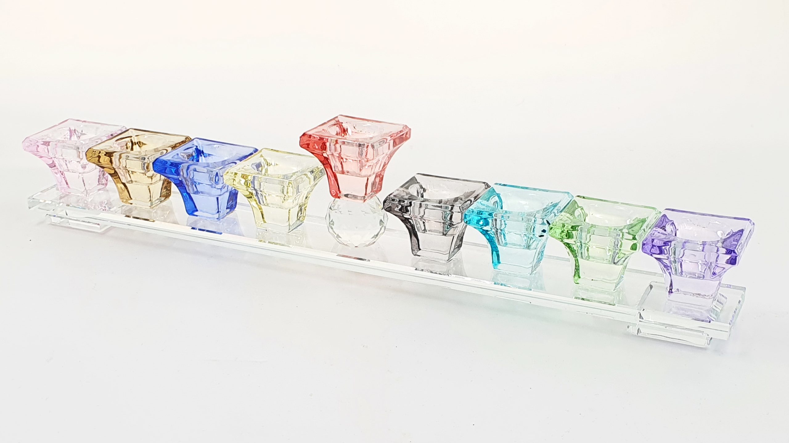 חנוכיה פס קריסטל בתי נר צבעוניים