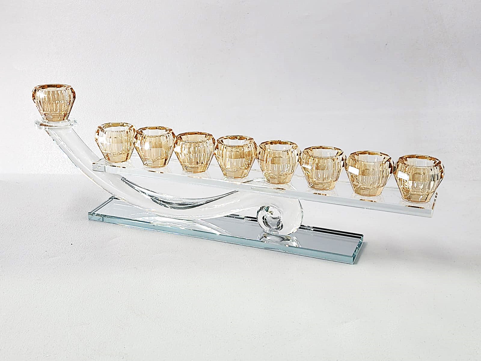 חנוכייה קריסטל/קנים זהב "אלאדין" 12X37 ס"מ